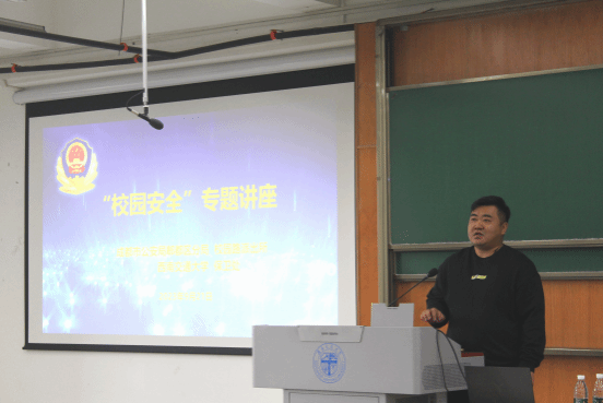 曾轲老师要求全体在座同学注册蓉城反诈卫士。曾轲老师从治安安全和反诈安全两大方面阐释了校园安全问题的复杂和严重。在治安安全上,曾轲老师从人身安全和财产安全展开讲述。在反诈安全上,曾轲老师从常见学生涉案案例、常见学生被骗案例和境外打击的困难性展开说明。曾轲老师最后进行了禁毒宣传和校园防艾的工作。