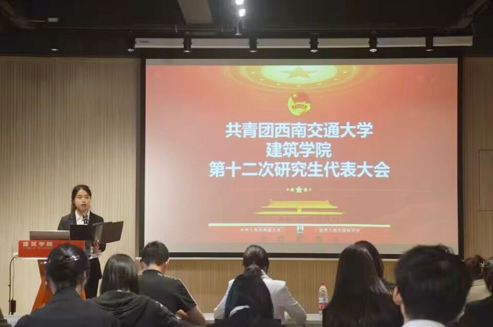 建筑学院第十二次研究生代表大会在犀浦校区八号教学楼A100报告厅顺利召开。本次会议由建筑学院研究生会主办,出席会议的嘉宾有建筑学院团委书记孔翔榆老师,研究生会指导老师杨珂老师,研究生辅导员王文静老师、罗勋锐老师,研究生会代表及各年级各专业的学生代表。
