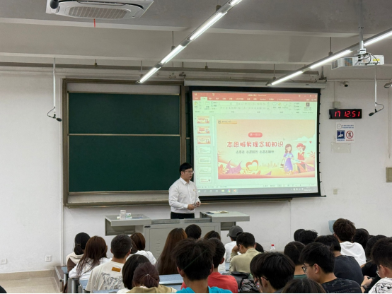 主讲老师首先介绍了志愿者的定义以及中国青年志愿者标志等基础知识。志愿者是不为物质报酬,主动承担社会责任,自愿为社会和他人提供服务和帮助的人,他们在工作中实现自我价值,也为满足社会需求、促进社会和谐贡献自己的一份力量。不仅如此,中国青年志愿者的奉献、友爱、互助、进步精神深深打动着我们。专属于中国青年志愿者的心型标志更是向我们传递了“热情献社会;真情暖人心”的信念。