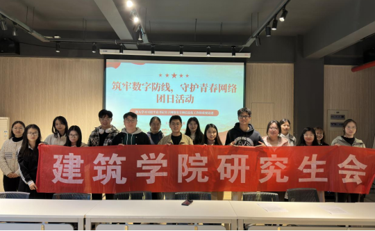 建筑学院研究生会在犀浦校区第8教学楼A100报告厅开展“筑牢数字防线,守护青春网络”主题团课学习会。