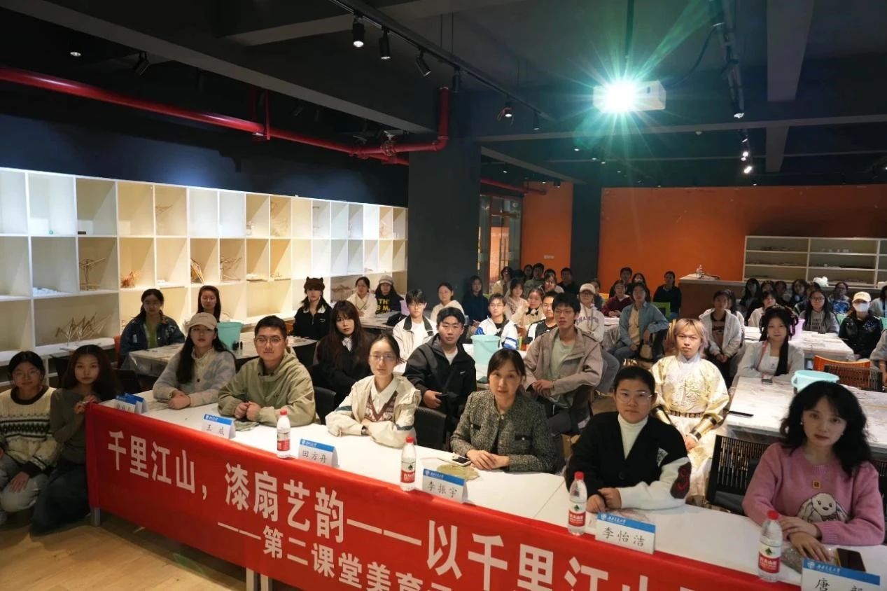 为响应学校美育教育,展示传统文化与艺术体验的融合,发挥学生社团育人功能,由校团委、建筑学院团委、人文学院团委主办,建筑学院研究生会、传统手工艺体验协会、汉服社承办的第二课堂美育示范课程“经典华章”第二季第一讲——“千里江山,漆扇艺韵:以千里江山图色彩绘制漆扇”顺利开展。本次活动特别邀请了建筑学院美术系副教授唐毅老师作为主讲人,和同学们一起赏析千里江山图之美,以其颜色绘制漆扇,从中深刻感悟色彩美学。