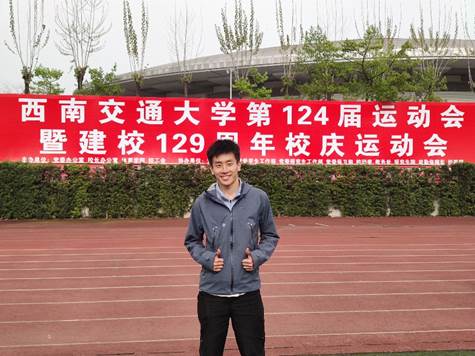 第124届运动会中唯一破纪录学生。这样斐然的成绩迅速让他成为了本次运动会的热点人物。在接受采访时,刚刚完赛的张绍帅同学正在运动场边为自己的队友加油助威。
