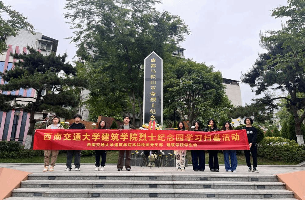 建筑学院本科绘画党支部与学院学生会组织全体成员赴金牛区马鞍山烈士陵园开展"纪念+保护+传承"三位一体主题教育实践活动,通过"四个一"创新形式将传统祭扫升华为沉浸式党史教育课堂。