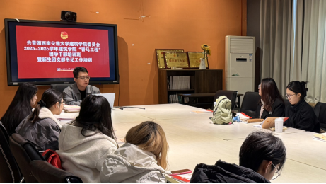 为扎实推动团员和青年主题教育贯彻落实,优化支部建设与管理,11月21日,建筑学院团委于我校犀浦校区建筑学院教职工之家举办了“青马工程”团学干部培训班暨新生团支部书记工作培训。专职辅导员王威老师及本、研新生团支书参加本次培训,会议由王威老师主持。