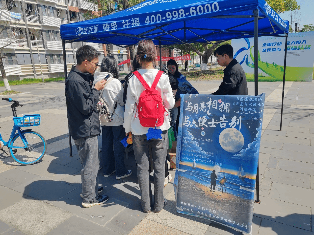 青年志愿者协会和图书馆学生管理委员会联合举办的“书签漂流”活动在校园生活园区顺利开展。本次活动以英国作家毛姆的经典小说《月亮与六便士》为主题,通过创意书签设计、互动留言和书籍分享等形式,引导同学们思考理想与现实的关系,吸引了众多师生热情参与。