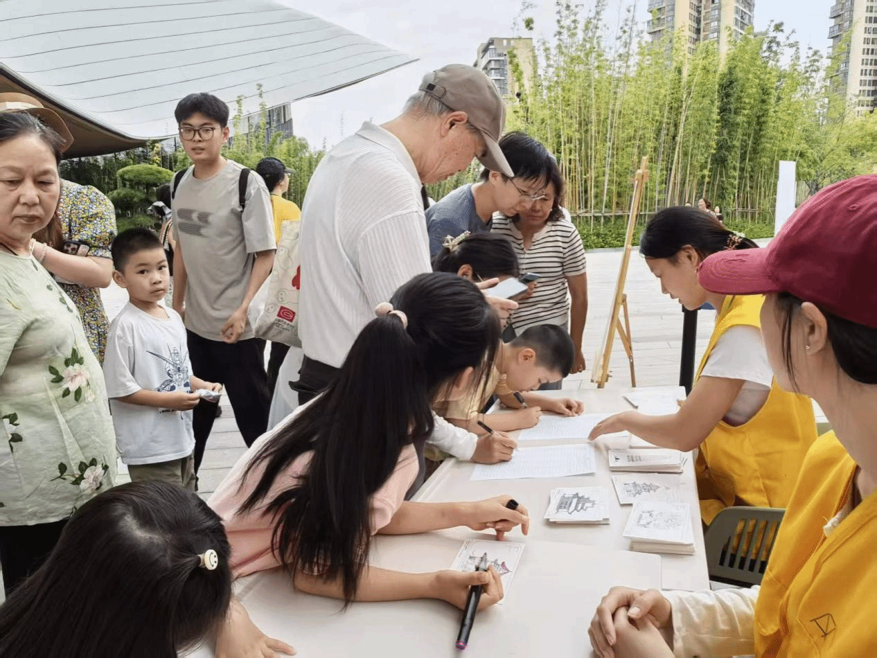 国庆假期中,建筑学院志愿者们以“小青椒”的热忱与专业活跃在天府艺术公园的各个角落。在主入口咨询区,志愿者们耐心为游客解答票务预约、游览路线规划等问题,累计提供咨询服务超300人次;在展区引导区,结合建筑学院专业优势,志愿者们为参观艺术展览的国内外游客带来传统古建明信片手绘等文创体验,让文化服务更具深度。