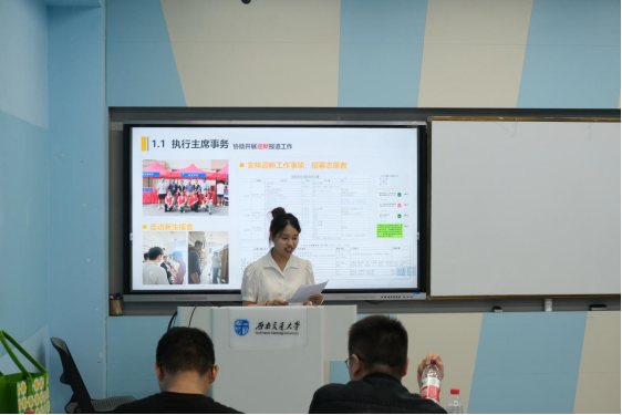 答辩严格遵循校院规定,以工作业绩、现场表现、成员打分为核心标准,确保公平公正。各部门参评同学通过一学年的工作,结合具体事实,系统汇报学术活动组织、权益服务落实、各项活动宣传等成果,总结经验不足并展望研究生会未来规划,充分展现了"学术为基、服务为本"的工作理念。