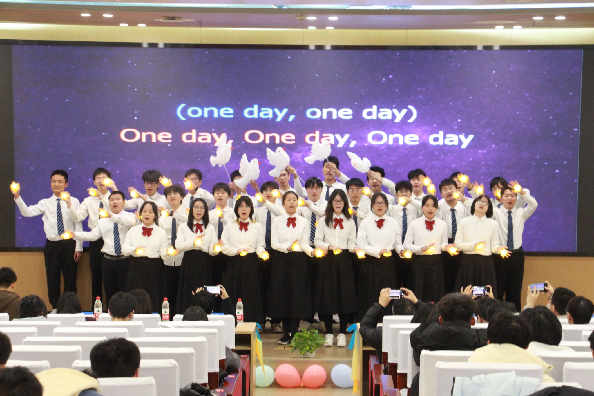 活动伊始,主持人介绍了到场嘉宾,并宣读比赛规则与评分标准。随后,2025级六个新生班级依次登场,呈现了一场精彩纷呈的英语歌曲合唱演出。从《Love Story》的深情婉转,到《Hey Jude》的温暖治愈;从《One Day》的悠远向往,到《Lemon Tree》的清新咏叹;从《Try Everything》的激昂奋发,到《Counting Stars》的逐梦光芒——同学们以清晰的发音、整齐的声部、创意的编排、饱满的舞台表现,赢得了现场阵阵掌声。