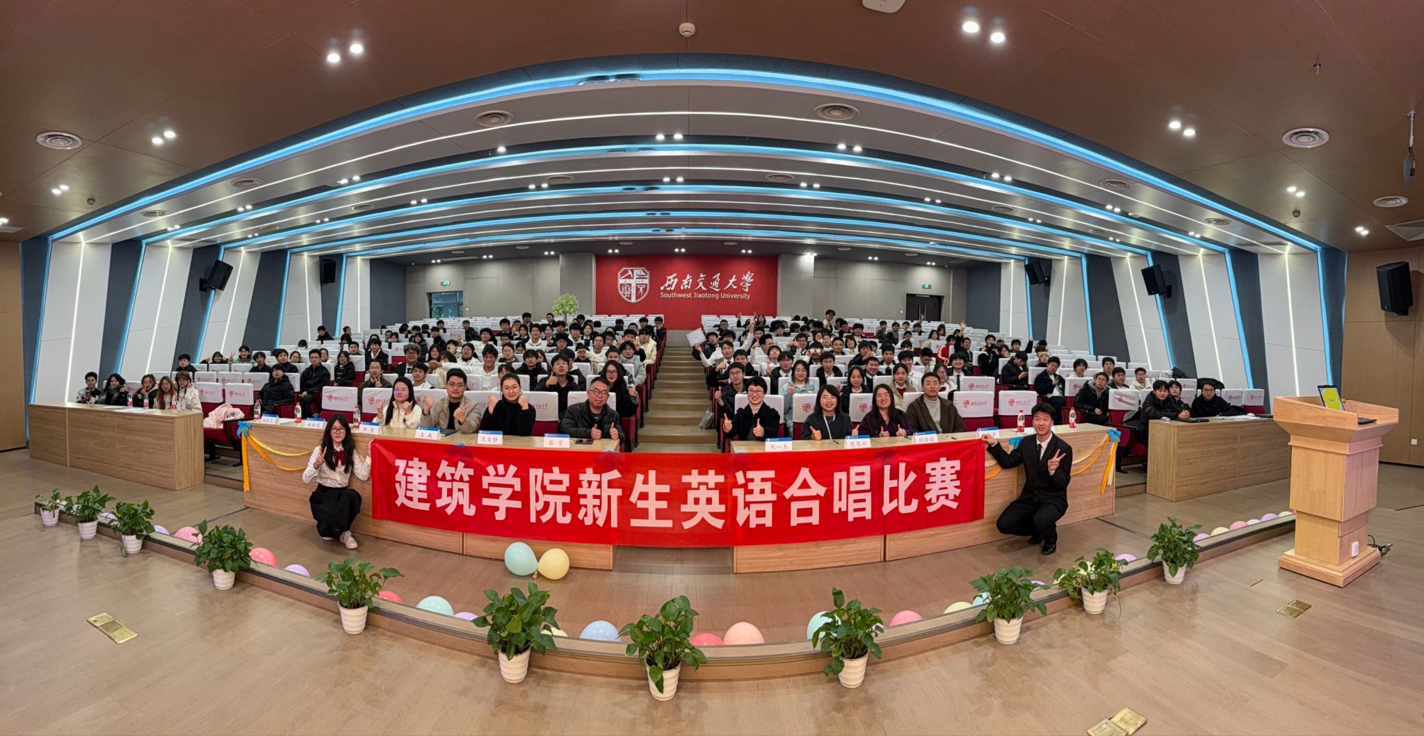 建筑学院于2025年12月18日在图书馆一号报告厅成功举办2025级新生英语合唱大赛。出席本次活动的有学院党委副书记刘一杰、2025级各班班导师、建筑学院各年级辅导员以及全体2025级本科同学。