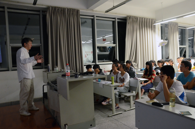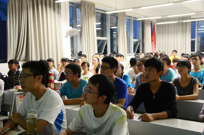 2013年9月24日晚上7时,建筑学院副院长林青教授以“致青春”为主题给建筑学院2013级全体新生进行了一场别开生面的演讲,。在暮色环绕的X8215多媒体教室内,现场气氛热烈,掌声雷动。
