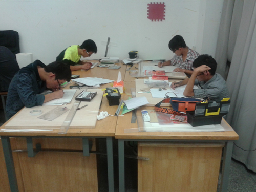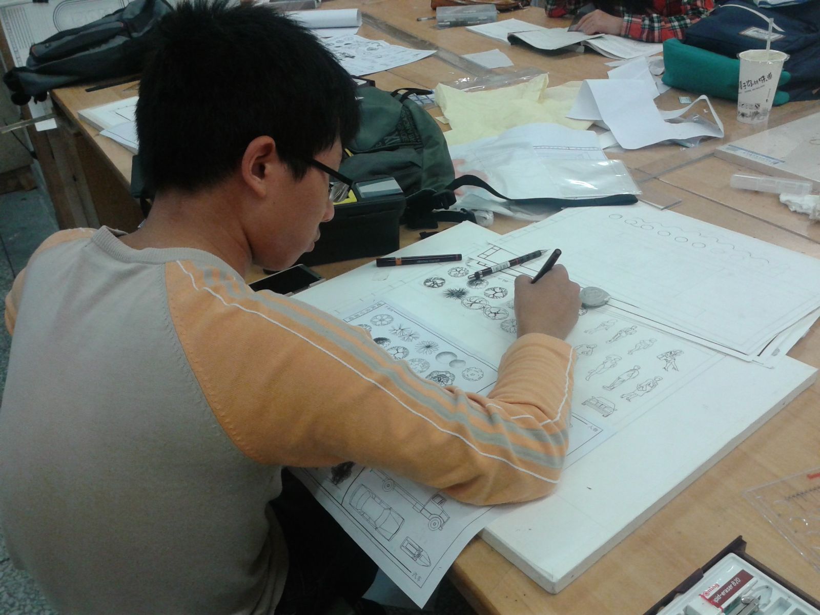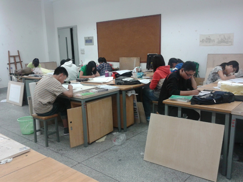 学生认真画图时场景