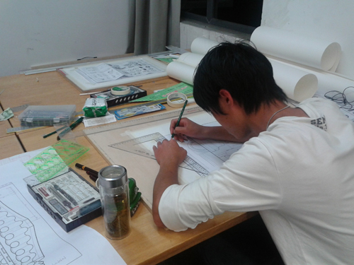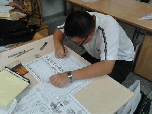 学生在进行手绘作业练习