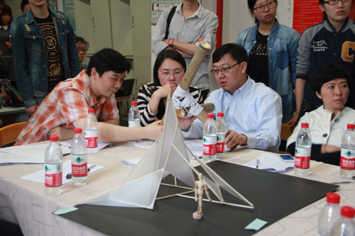 建筑学院沈中伟院长在评审前做了重要讲话,沈院长讲到建筑是造型方面的学科,有关于建造的活动全世界都在做,作为这样一个活动与构成之间紧密联系。建造是通过材料挖掘性能,并研究节点以及空间,在整个建造活动中应该充分发挥材料的性能与价值。建造的意义是在过程中抽象出学科思维的本质,发挥建筑学的普遍性以及规律性,并将建构材料的性能与节点的意义融入到建筑学学科。本次建造节跨学院、跨学科、跨专业,建筑学院师生与艺传学院师生共同参与,增进了两个学院师生友谊,为两院师生合作搭建了平台,为两院师生专业交流创造了机会。