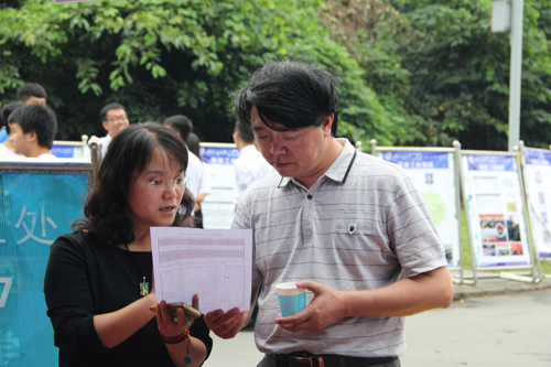 在迎新过程中,学院领导向开展迎新工作的同学们以及辅导员老师详细了解了迎新工作的相关流程,并提出了中肯的建议。辅导员方翰老师为学院领导汇报了本次迎新工作的具体安排和创新之处,讲解了用二维码宣传学院组织和传递学院信息的便利和快捷之处,获得了领导们的肯定。