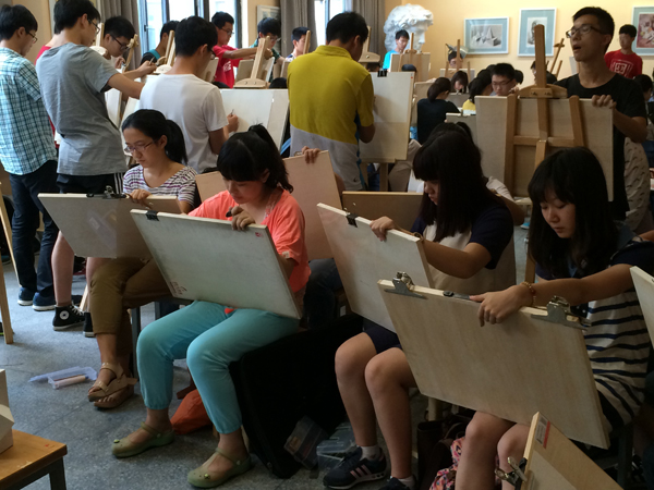 建筑学院2014级本科新生美术加试于9月7日14:30在建筑学院美术教室进行,本次美术加试由建筑学院美术教研室洪毅教授、学院领导担任主考,辅导员老师担任监考。