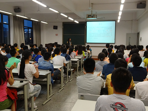 脱离了高中三点一线、单调乏味的生活,初到交大的新同学们对大学里丰富多样的学生组织及活动充满了向往。而今天的专题讲座意在向新同学们介绍学校及学院各个学生组织的特色,展示各个学生组织的风采,让2014级新生更多地了解学校及学院学生组织。讲座上,各个学生组织负责人分别从职能、活动、成员等不同角度全方位介绍其组织,其精美的PPT和精彩的讲解让同学们更加希望进入学生组织,锻炼自己的能力,提升自己的综合素质。