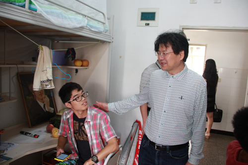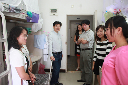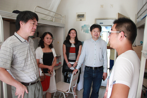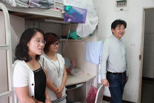 9月8日中秋节,学院领导及辅导员到2014级新生寝室看望新生。