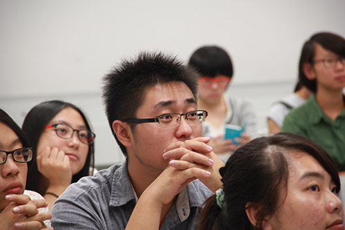 随后,资深摄影记者张钰对新生们进行了摄影方面的培训,他跳过了繁琐枯燥的操作说明,直接从实用角度根据大家一般的错误做法和困惑进行了详细的讲解并结合经验讲解摄影技巧。其中解释的曝光不准,主题模糊等问题让困惑许久的同学们恍然大悟,背景虚化等摄影技巧更是让新人们大开眼界。最后学长还从视觉引导的角度上介绍了不少摄影知识。在学长的精彩解说完毕后,此次媒体培训完美结束。