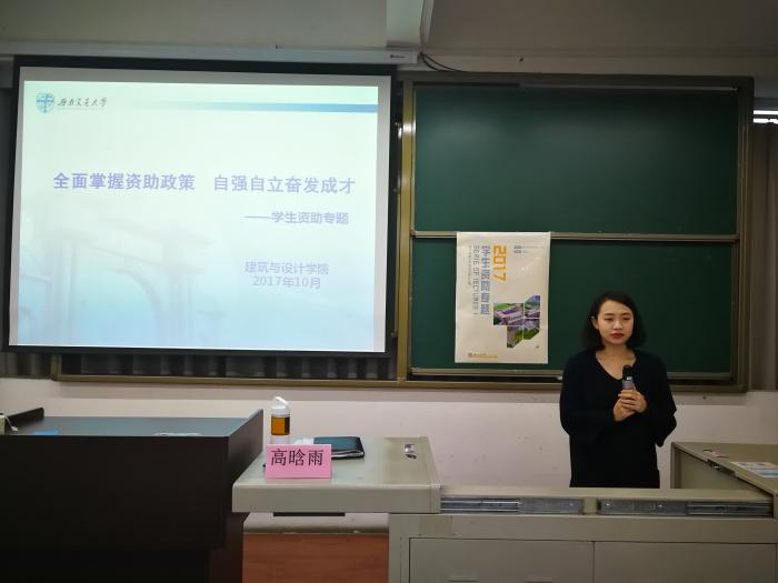 10月25日下午6:00,我院新生入学教育系列讲座学生资助专题于8215教室召开。本次讲座由我院资助专项负责辅导员高晗雨老师主讲。院学工组刘野老师、袁毓璟老师、王唯老师参加了此次讲座。