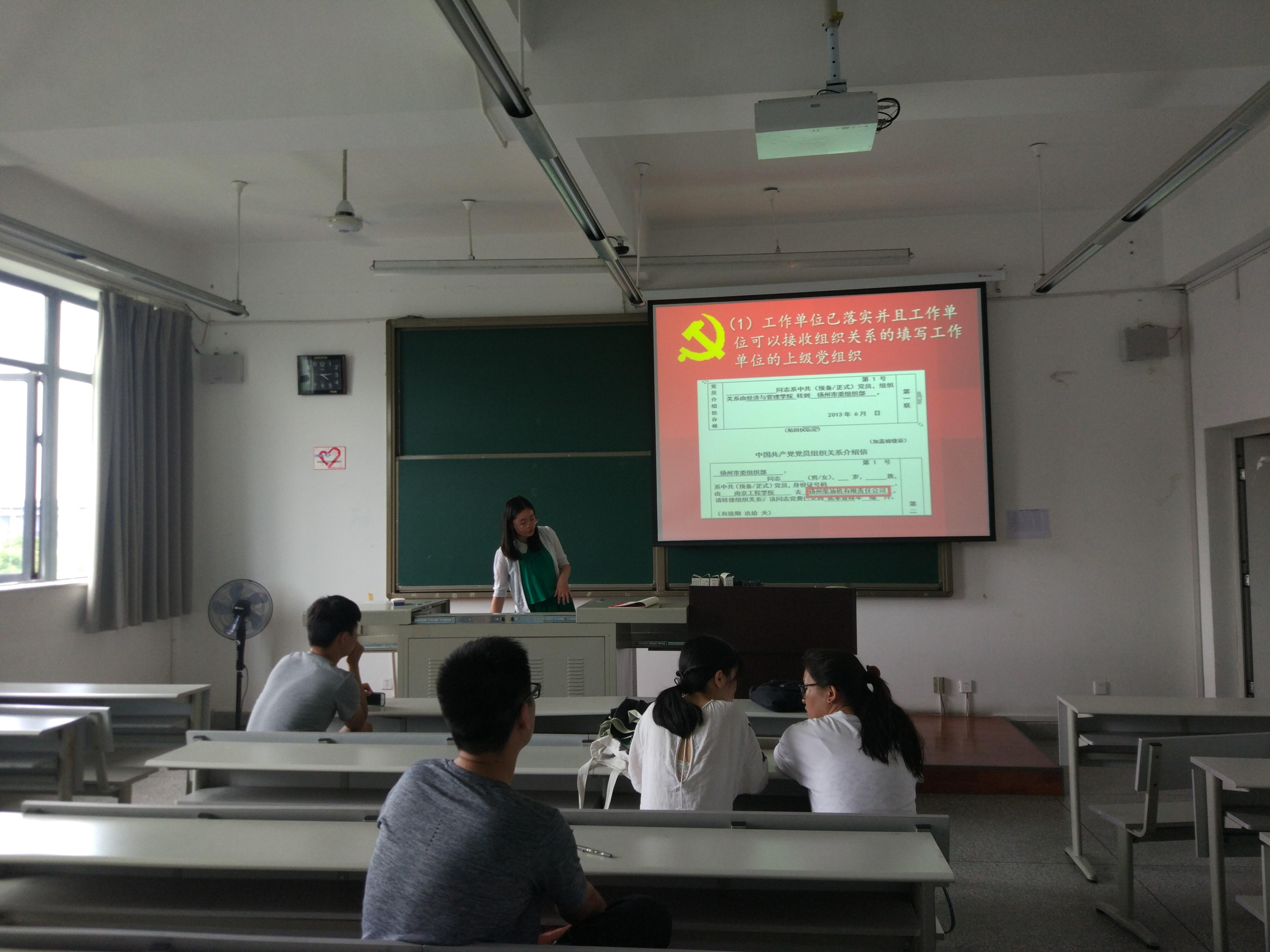 首先,汤婧同志讲解了党员组织关系转接的工作流程、手续办理和介绍信的开具,同志们进行了详细记录。之后,汤婧同志针对本支部党员的实际情况,解读了对于国内升学的研究生党员和国外升学的研究生党员的党组织关系的转接要求,并强调了组织关系和人事关系的不同转接办法。