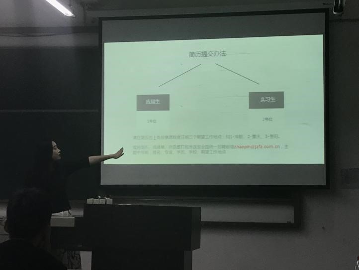 为了帮大家有个更好的就业面试的发挥,4月12日,我院匠心筑梦就业服务中心,在学校招就处和院团委的指导下,组织开展了“地产HR面对面——面试技巧及简历提升”就业指导讲座,在活动中请来了基准方中的hr吕薇女士为大家解惑,在活动中,HR给大家详细的介绍了在入职场中的一些面试技巧,生动的为大家讲述了日常使用到的一些面试礼仪,为大家讲述了一个成功的面试里面包括了面试礼仪,个人自信,谦逊交流,充足的作品等等,为大家入职场的面试准备也打了一针强心剂,明白了面试中要注意到的一些问题。