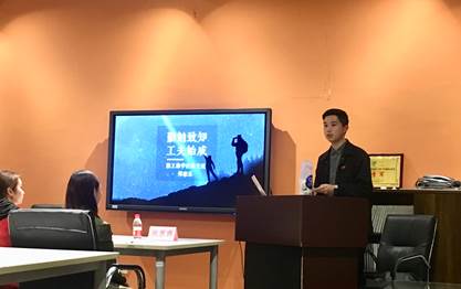 本次活动的主讲嘉宾是18届校级勤工助学之星的获得者、前校党政办公室助理团负责人郑家乐同学。他主要向同学们分享了自己大学四年勤工助学的经历以及平衡工作与学习的方法等等。提出了许多给同学们以启迪的建设性意见。活动尾声,郑家乐同学还耐心地总结