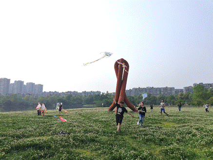 各组成员发挥想象对风筝进行绘制,其过程增加了同学们的集体凝聚力。第三项流程,由老师们组织各组同学放飞制作完成的风筝,并拍照留念。