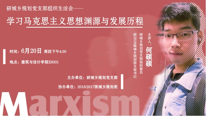 2019年6月20日16点30分,研城乡规划党支部在X8331开展了“学习马克思主义思想渊源与发展历程”主题党日活动,活动由党支部书记李渊同志主持。