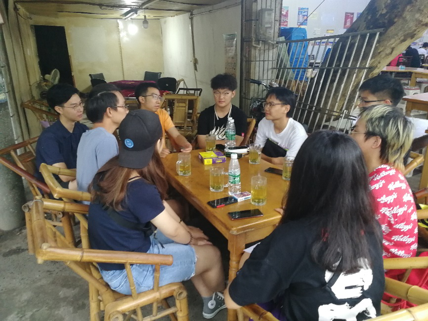 接着,实践团的还对场镇的产业结构进行了调研,记录了沿街商铺的分布情况。在洞子口,最多的商铺就是茶馆,茶馆中活跃的绝大部分是中老年群体。为了体验当地人民的真实生活状况,与当地居民接轨,实践团成员在茶馆中切实体验了成都的茶文化,感受在紧张的城市中的一丝宁静和悠闲的快乐,这对的改造方案起到了重要的启发作用。
