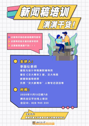 为提升我院学生新闻稿知识水平和写作能力,增强综合素养,充实同学们的课余生活,2020年11月13日晚19时,探花视频
