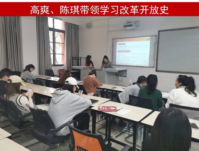 高爽和陈琪带领大家学习改革开放史。改革开放史是中国特色社会主义的重要创新。1978年党的十一届三中全会后, 以经济建设为中心成为整个时代的主题。改革开放在各个领域都释放出巨大的生产力。一时间,三峡蓝图得以实现,“神九神十”遨游太空,奥运、世博在中国举办,“一带一路”如火如荼,国产航母顺利下水,“歼-20″飞上蓝天…