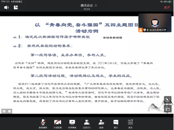 为了进一步提升我院学生干部新闻稿撰写能力,增强学生干部综合素质,建筑与设计学院团学中心、团委学生会于2021年6月9日晚上19点开展了建筑与设计学院学生干部“青马工程”系列培训之“新闻稿写作”专题培训。本次培训由我院学生会宣传部部长赵洁同学主讲,本科及研究生学生干部参与学习。