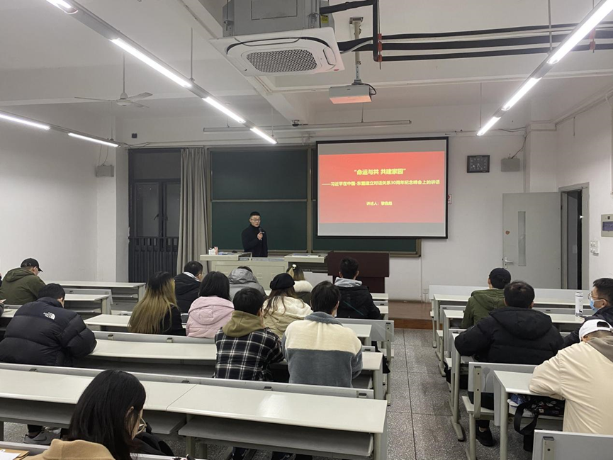 研建筑学专硕党支部于我校犀浦校区八号教学楼X8323召开党史学习之“命运与共,共建家园”习近平在中国·东盟建立对话关系30周年纪念会上的讲话主题组织生活会,支部全体党员及部分入党积极分子参加了本次会议。本次会议由黄越同志主持。