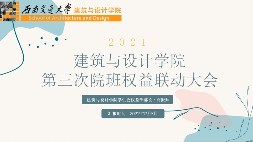 为了收集和反馈同学们提出的学习生活方面的问题,维护同学们的权益,为同学们排忧解难,2021年12月5日晚19时30分,建筑与设计学院团委学生会通过线上腾讯会议的方式开展了第三次院班权益联动大会。此次权益大会邀请了建筑与设计学院各班级生活委员参与。