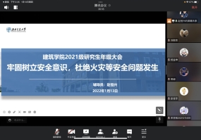 建筑学院召开2021级研究生期末总结大会暨安全意识培养会议,会议形式为线上会议。会议由2021级研究生辅导员赵恒兴主持,2021级全体研究生参与本次会议。