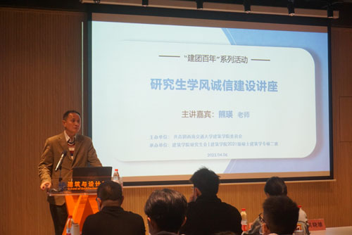为构建良好的学术环境,用学术诚信涵养科技创新,我院于 4 月 6 日下午在犀浦校区八教A100报告厅举办研究生学风诚信建设讲座活动,本次活动由学院建筑系熊瑛副教授担任主讲嘉宾。学院党委书记吴晓雄,团委书记孔翔榆,研究生会指导教师杨珂,研究生辅导员赵恒兴、赵思琦及全院近一百名同学参加了本次活动。本次活动由学院研究生会联合研2021级建筑学专硕二班团支部共同举办。