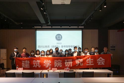 为进一步帮助学院研究生了解公务员职业情况,有效备考公务员及选调考试,4月20日下午,由建筑学院研究生会承办的四川省公务员(选调生)备考指导专题讲座在八号教学楼A100报告厅举行。此次讲座杨珂老师请到了华图教育机构的张苏老师担任主讲嘉宾,研究生辅导员杨珂老师、赵恒兴老师、赵思琦老师及学院近百名研究生参加此次活动。