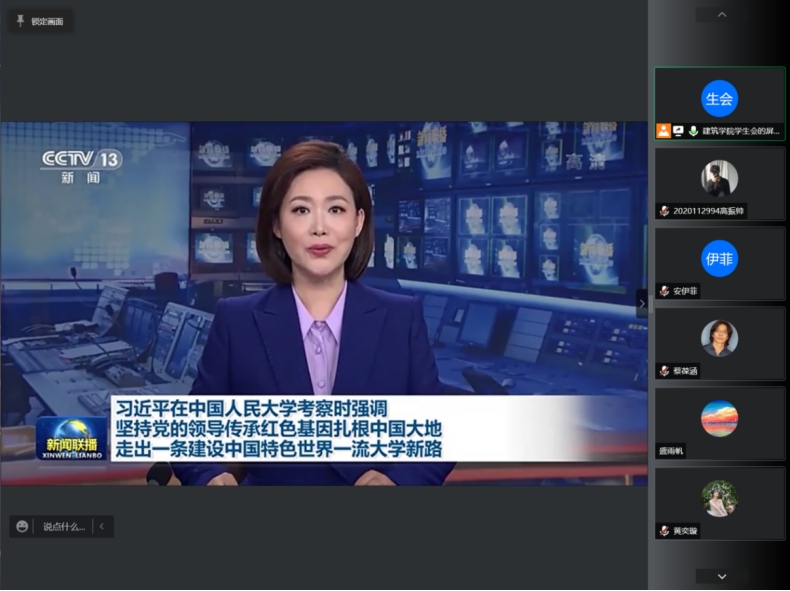 在升旗过后,为了弘扬爱国、进步、民主、科学的五四精神,积极推进青年文化建设,激发同学们的爱国创新热情为了弘扬爱国、进步、民主、科学的五四精神,积极推进青年文化建设,激发同学们的爱国创新热情,建筑学院学生会临时团支部在线上开展“学习习近平总书记在中国大学考察时的讲话”主题团日活动。