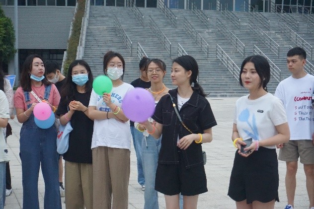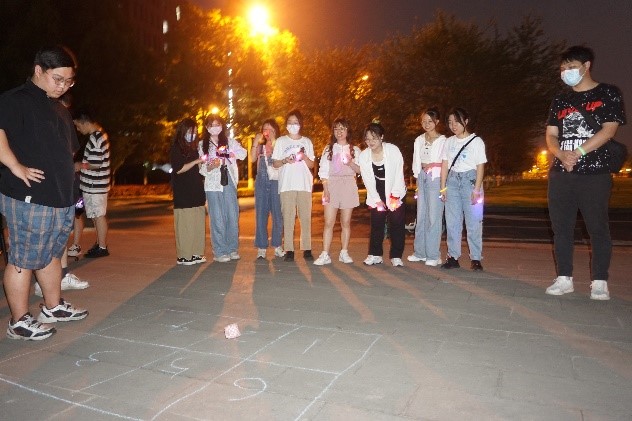 晚上19:30,由主持人开始宣读完规则后,活动正式开始。比赛开始前,工作人员分别在俟实扬华浮雕墙、图书馆、钟亭三个位置设置游戏点位,比赛过程中,由四位同学组成的比赛小队需依次通过这些点位,完成相应任务并领取活动道具,方可算作完成任务。三处点位分别安排有螃蟹接力、沙包准投和车轮滚滚游戏,每项游戏的完成都需要每位成员的无间合作才能顺利完成,增强了同学们的合作意识和合作能力。