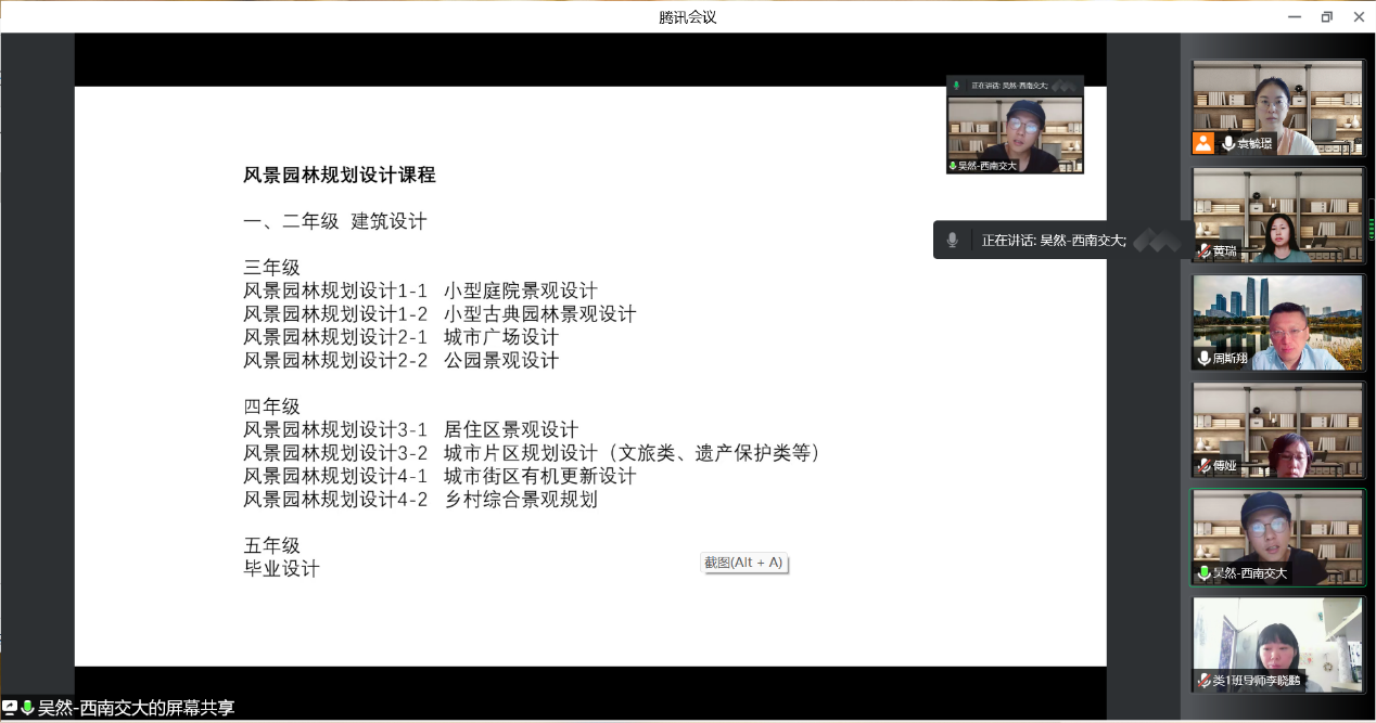 副系主任周斯翔老师着重从办学历史与办学理念展示了我院风景园林专业高度国际化的特点,介绍了该专业国际化人才培养模式和成熟平台等。黄瑞副教授介绍了风景园林专业的学科交叉领域与培养方案,并对新生未来规划方向提出建议。专业教师吴然对课程安排与相关竞赛进行了讲解,鼓励学生多多参与竞赛。