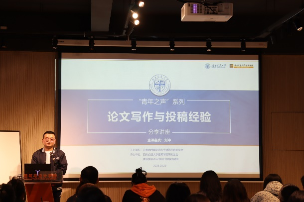 春意渐浓,研训正当时!为更好提升同学们科研意识,论文写作能力,2023年3月29日14:30,由建筑学院研究生会与建筑2022级硕士城乡规划班联合举办的“青年之声”系列——论文写作与投稿经验分享讲座顺利开展。讲座由建筑学博士刘冲作为主讲,学院六十余名同学参加此次讲座。