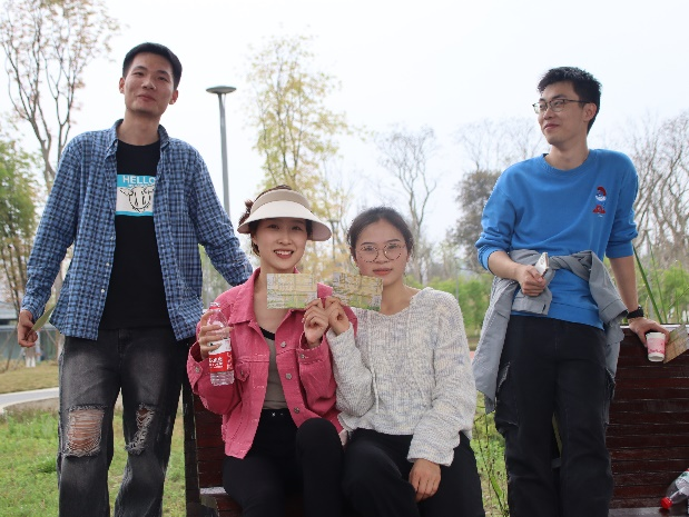 沿绿道骑行约 7.5 公里,为本次骑行活动的第一个打卡点——玉石湿地公园休息亭。工作人员在本点发放明信片、盖章,同学们积极自愿参与组织的小游戏。绿道骑行 15 公里左右,到达休息站——白鹭湾湿地公园,工作人员在此处发放免费饮用水和应急药品,保障大家的安全。