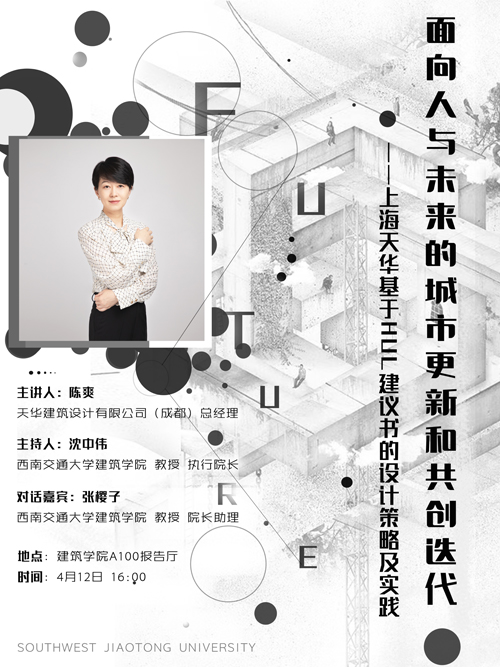 主讲人:陈爽天华建筑设计有限公司 (成都)总经理主持人:沈中伟探花视频 建筑学院 教授 执行院长对话嘉宾:张樱子探花视频 建筑学院 教授 院长助理地点: 建筑学院A100报告厅时间: 4月12日16:00