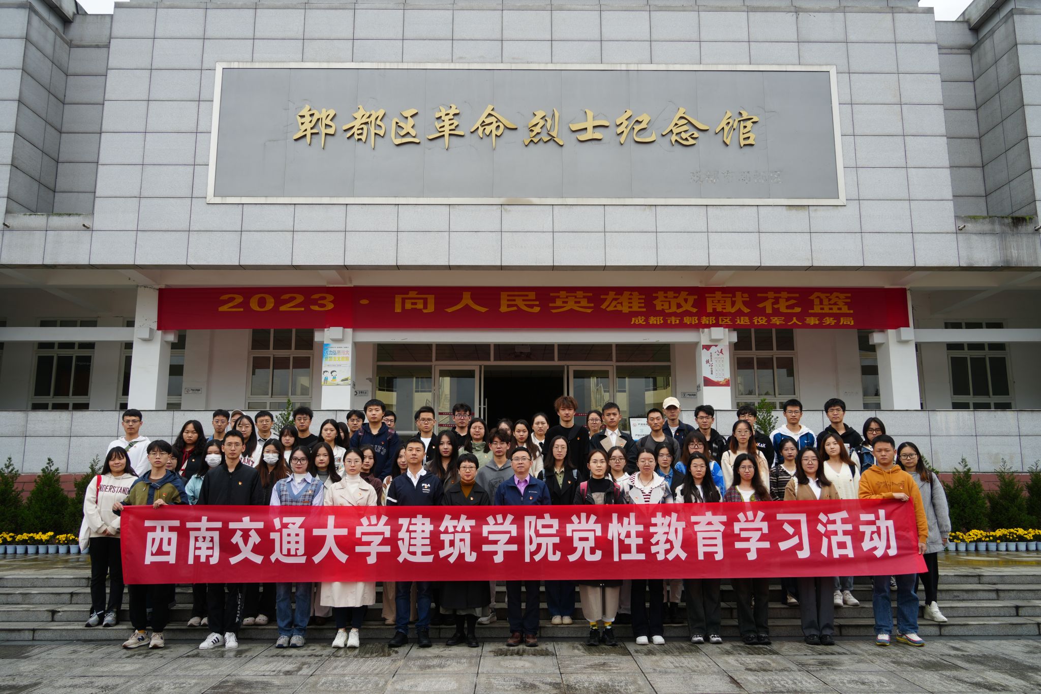 10月19日下午13:00,学院党委书记胡伟,党委副书记刘一杰,党委组织员方翰,风景园林系党支部书记袁毓璟,辅导员罗勋锐及55名新党员集合前往郫都区烈士陵园祭奠缅怀革命英烈。在讲解员的带领下,同志们在烈士纪念碑前奏唱国歌,宣读、重温入党誓词,依次敬献鲜花,行鞠躬礼并肃立默哀,表达对烈士的崇高敬意和深切悼念之情。