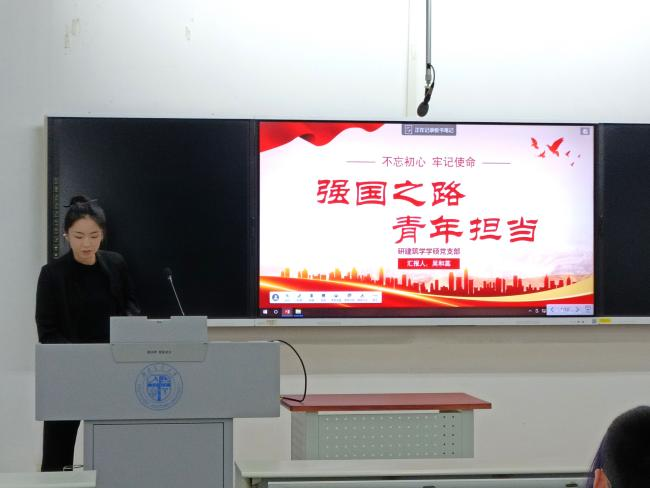 为了进一步唤醒支部青年党员的家国情怀,激发奋斗热情,培养担当精神。2024年10月10日下午16:00,研建筑学学硕党支部于X8323教室组织开展“强国之路,青年担当”主题党日活动。会议由曲学敏同志主持,支部全体党员和积极分子参加。