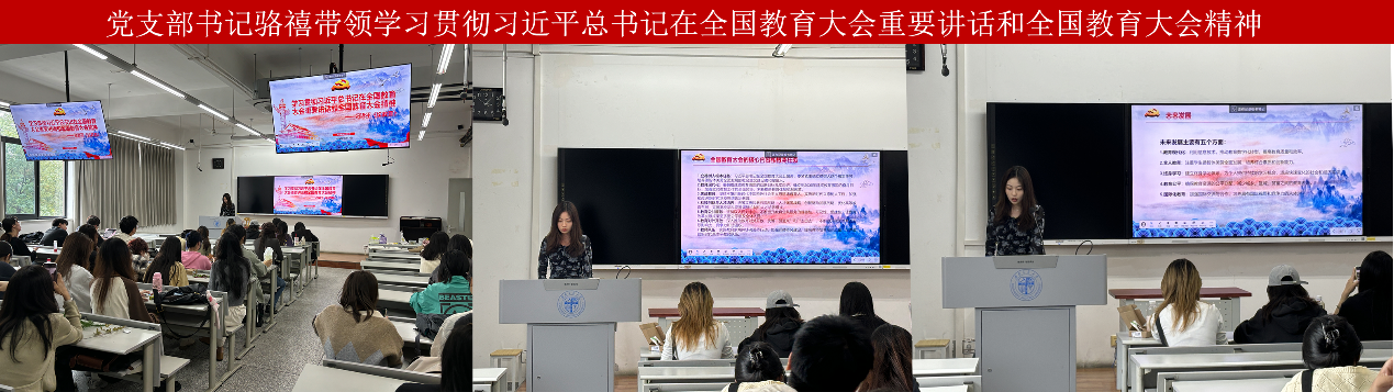 活动伊始,党支部书记骆禧带领学习贯彻习近平总书记在全国教育大会重要讲话和全国教育大会精神,以及习近平总书记《论教育》专题文集。习近平总书记在讲话中指出,教育是强国建设、民族复兴之基,建设教育强国需要紧紧围绕立德树人根本任务,着眼于培养德智体美劳全面发展的社会主义建设者和接班人,坚持社会主义办学方向,坚持和运用系统观念,正确处理支撑国家战略和满足民生需求、知识学习和全面发展、培养人才和满足社会需要、规范有序和激发活力、扎根中国大地和借鉴国际经验等重大关系。党员同志们纷纷表示要深刻领会其时代背景与精神实质,将学习成效切实转化为推进教育现代化和教育事业高质量发展、建设教育强国的实际行动。