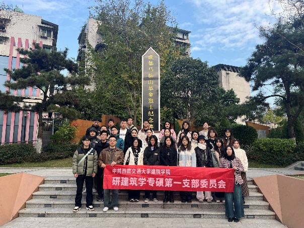 为了深入学习和传承红色革命精神,感悟革命先烈的英勇事迹,教育引导党员同志始终牢记初心使命,传承红色基因、赓续红色血脉、发扬红色传统,将革命先辈开创的伟大事业继续向前推进。2024年11月28日下午,研建筑学专硕第一党支部集体前往成都市马鞍山烈士陵园开展了“追寻红色,倾听历史”的主题活动。
