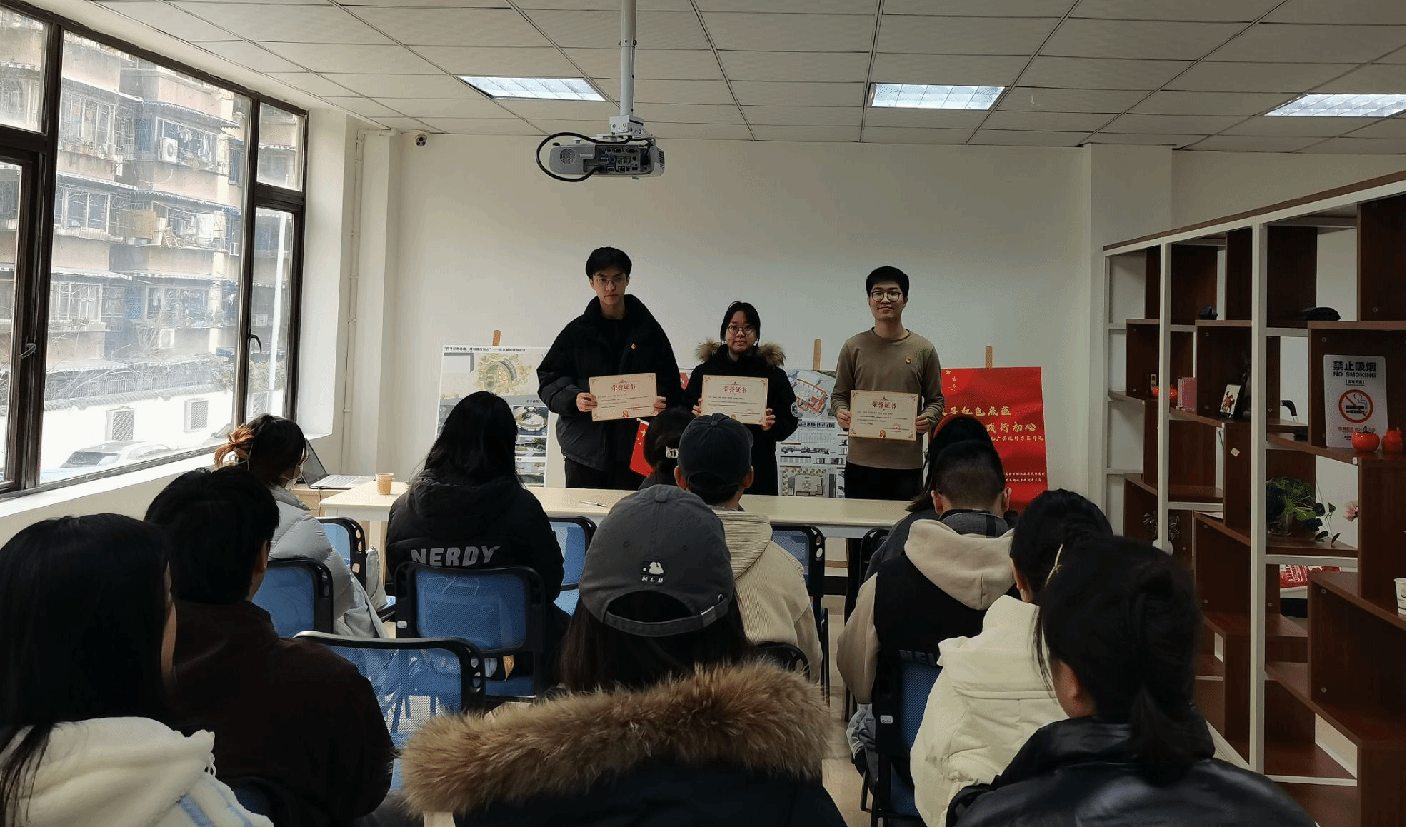 讲解之后双方对设计方案进行了充分讨论,对参与设计的学生们颁发了证书,以表彰其努力和贡献。活动结束后,支部同志集体合影留念。