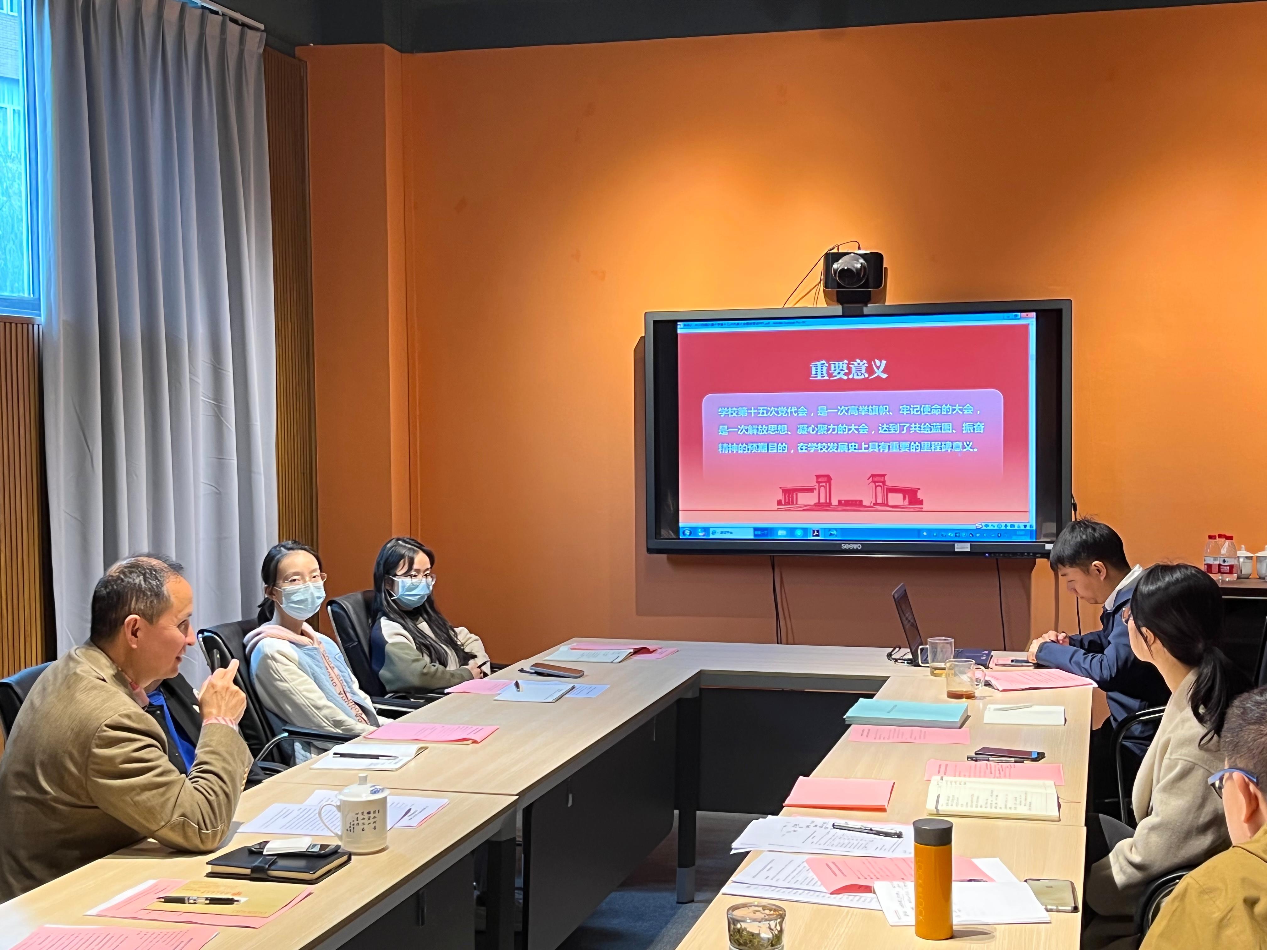 第十五次党代会精神学习。学院党政班子、党委委员、教工党支部、学生党支部书记参加会议,学院党委吴晓雄同志主持会议。