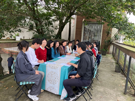 2022年11月1日,建筑学院风景园林党支部组织全系教师在乡村振兴发展中的安靖街道蜀绣公园中共同学习党的二十大精神。